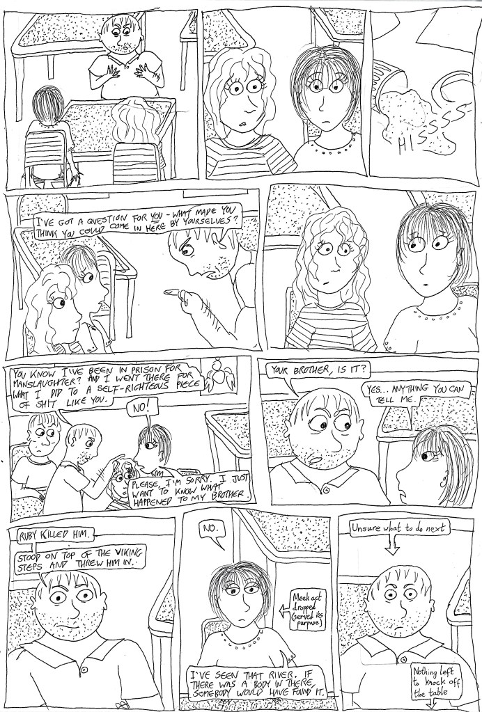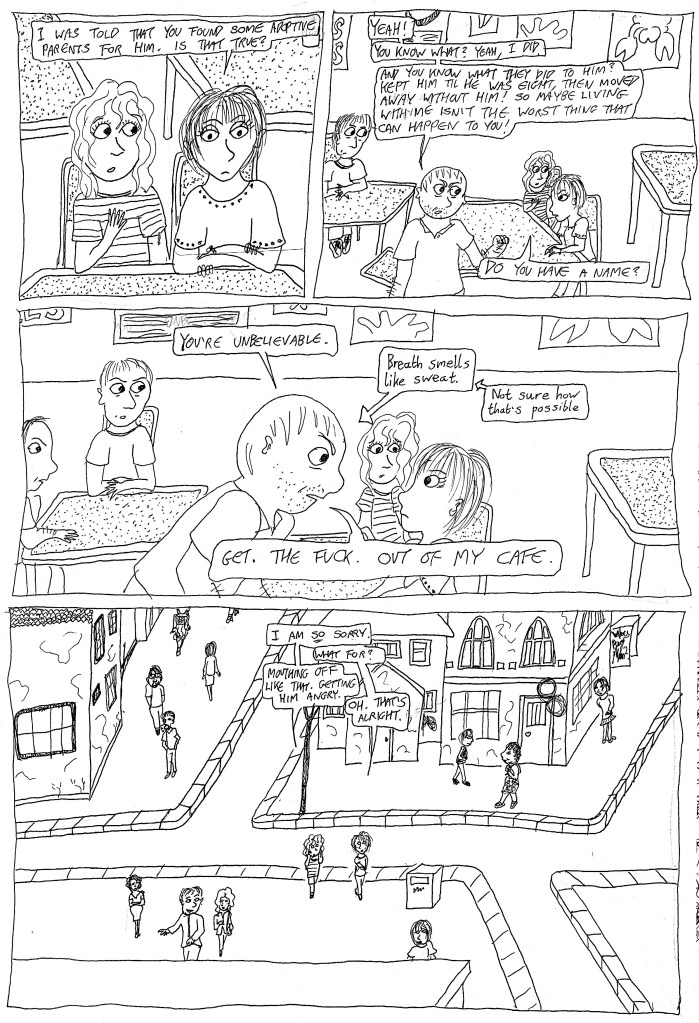 Rudgethorpe (Chapter One, Part Five, pages fifteen to nineteen) Posted on April 17, 2026 by weeks4send (CONTENT WARNING: Threats of violence, mentions of infanticide, use of the c-word.) Share this: Share on X (Opens in new window) X Share on Facebook (Opens in new window) Facebook Like Loading... Related