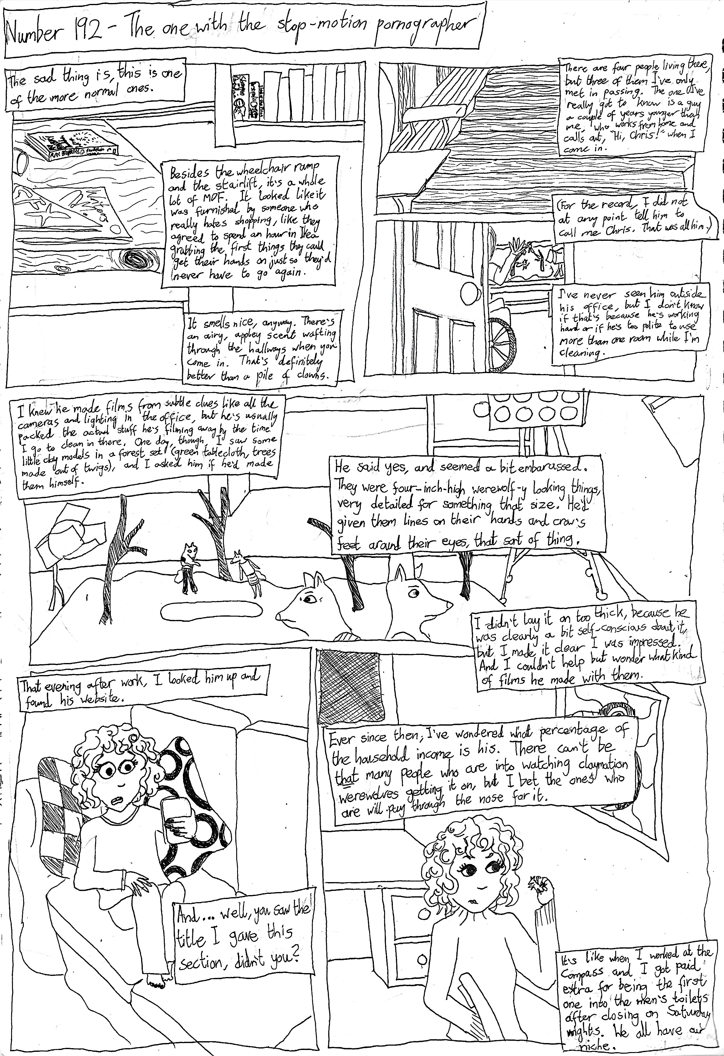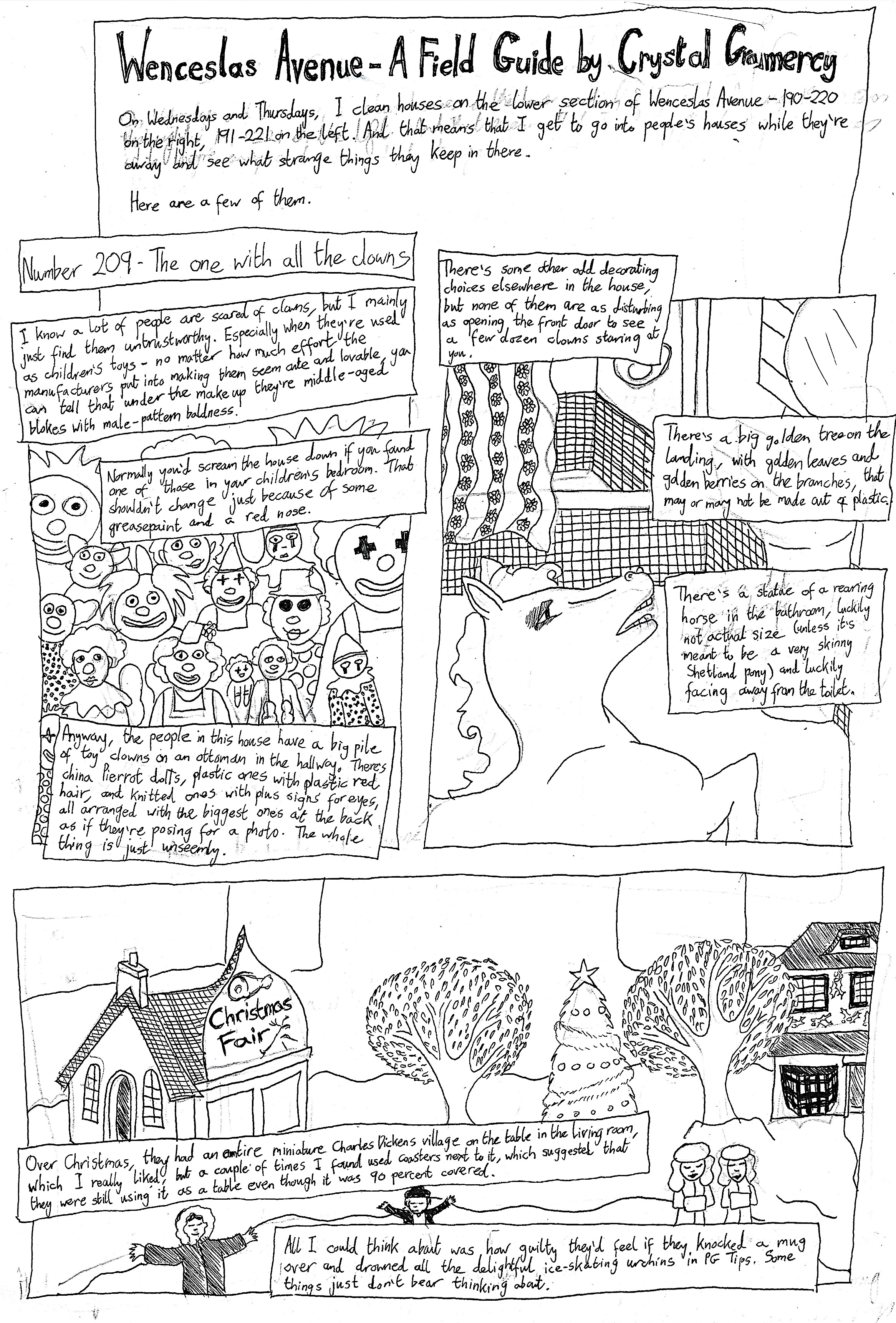On Wednesdays and Thursdays, I clean houses on the lower section of Wenceslas Avenue- 190-220 on the right, 191-222 on the left. And that means that I get to go into people’s houses while they’re away and see what strange things they keep in there.