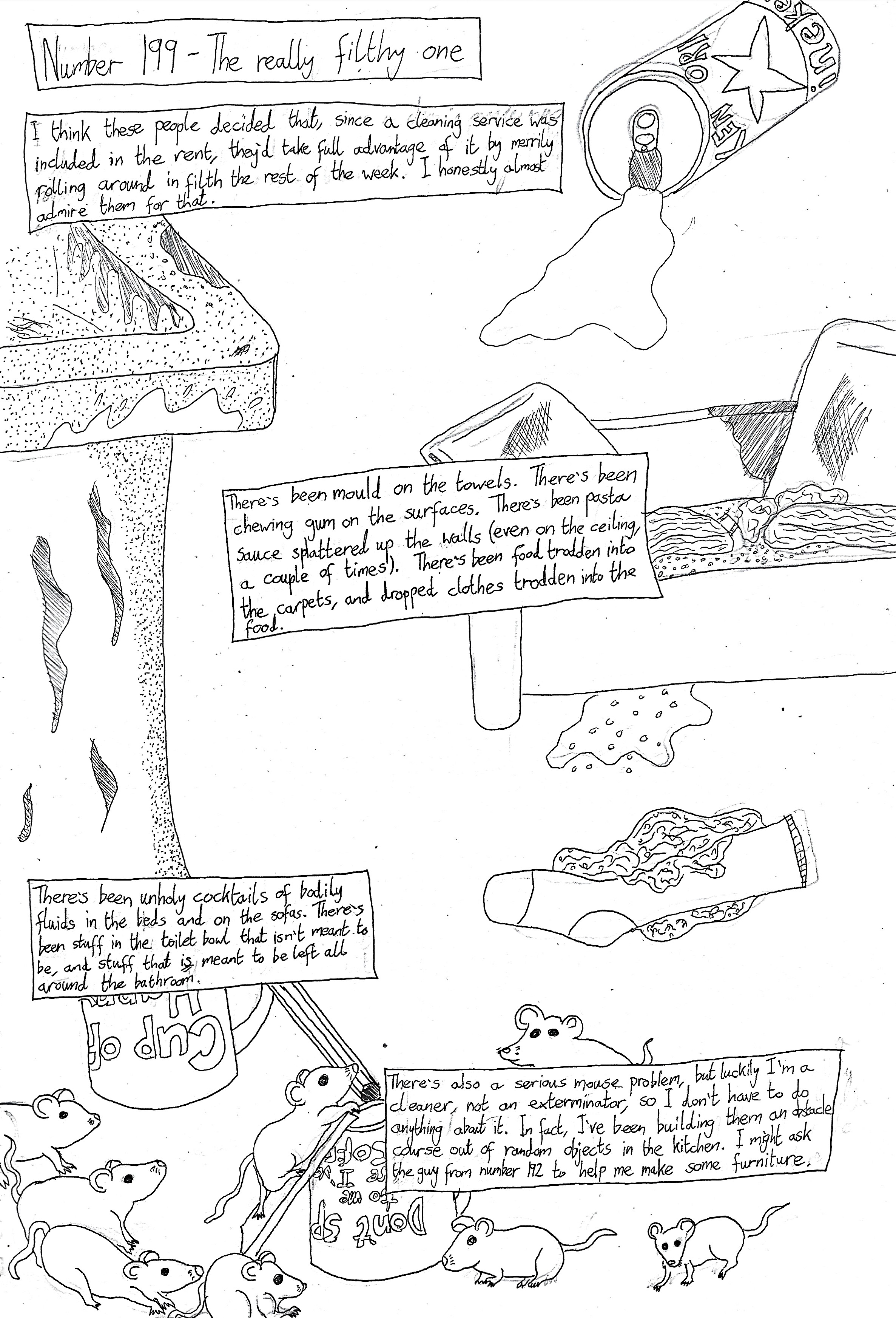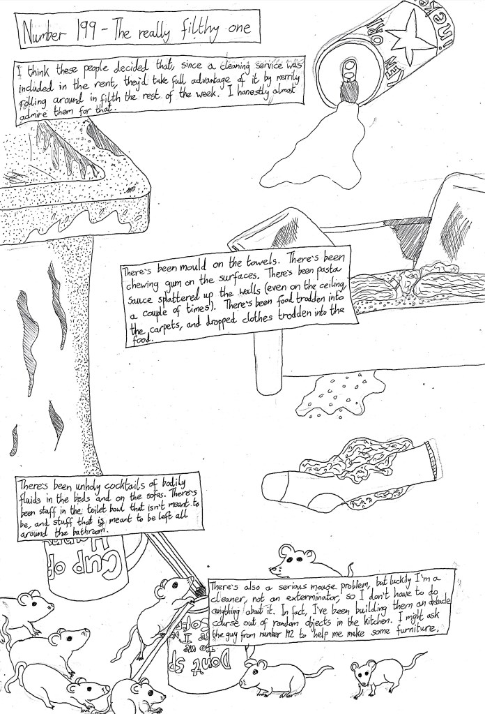When I started cleaning here, the owners left me a note to say that it was very important for me to never go into the spare room upstairs with the locked door. There was a set of keys on the table, with the one for the spare room already labelled, so I’d know which one not to use.