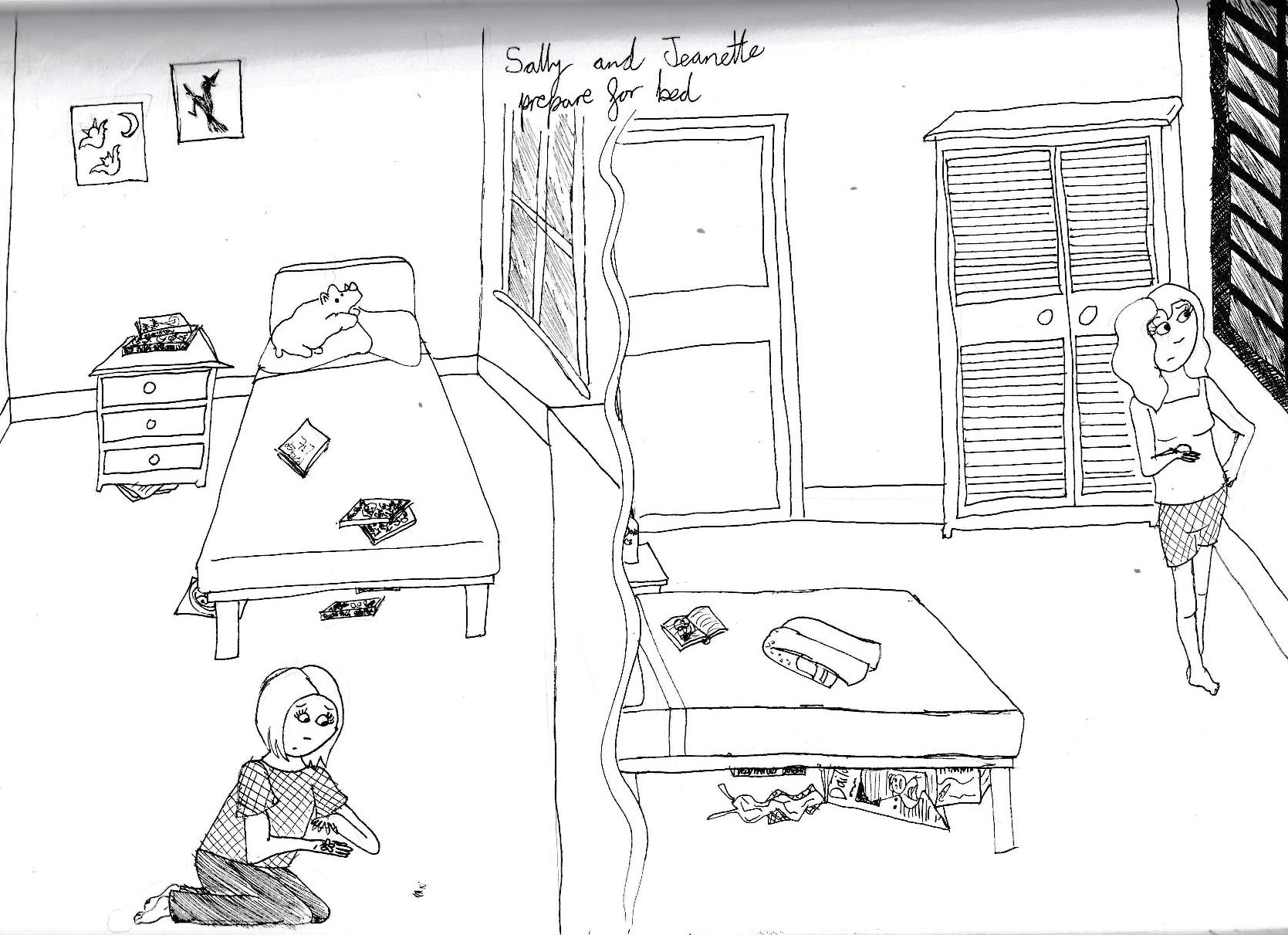Jeanette turned out the light and got into bed. The big, black window loomed in front of her. There weren’t any curtains, so all you could see from the bed was the sky. You could actually see the stars from here. You couldn’t at home.